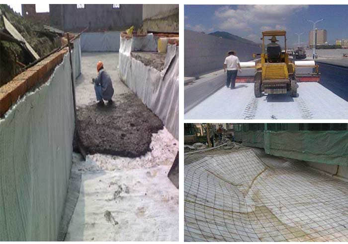 是一種專門用于人工湖泊水景、垃圾填埋場、地下車庫、樓頂花園、水池、油庫及化學品堆場等防滲漏的土工合成材料,它是由高膨脹性的鈉基膨潤土填充在特制的復合土工布和無紡布之間,用針刺法制成的膨潤土防滲墊可形成許多小的纖維空間,使膨潤土顆粒不能向一個方向流動,遇水時在墊內(nèi)形成膠狀防水層,達到防止水滲漏的效果。